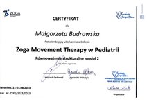 - Zoga Movement Therapy w Pediatrii - moduł 1 (2019r.) oraz moduł 2 (2023r.)